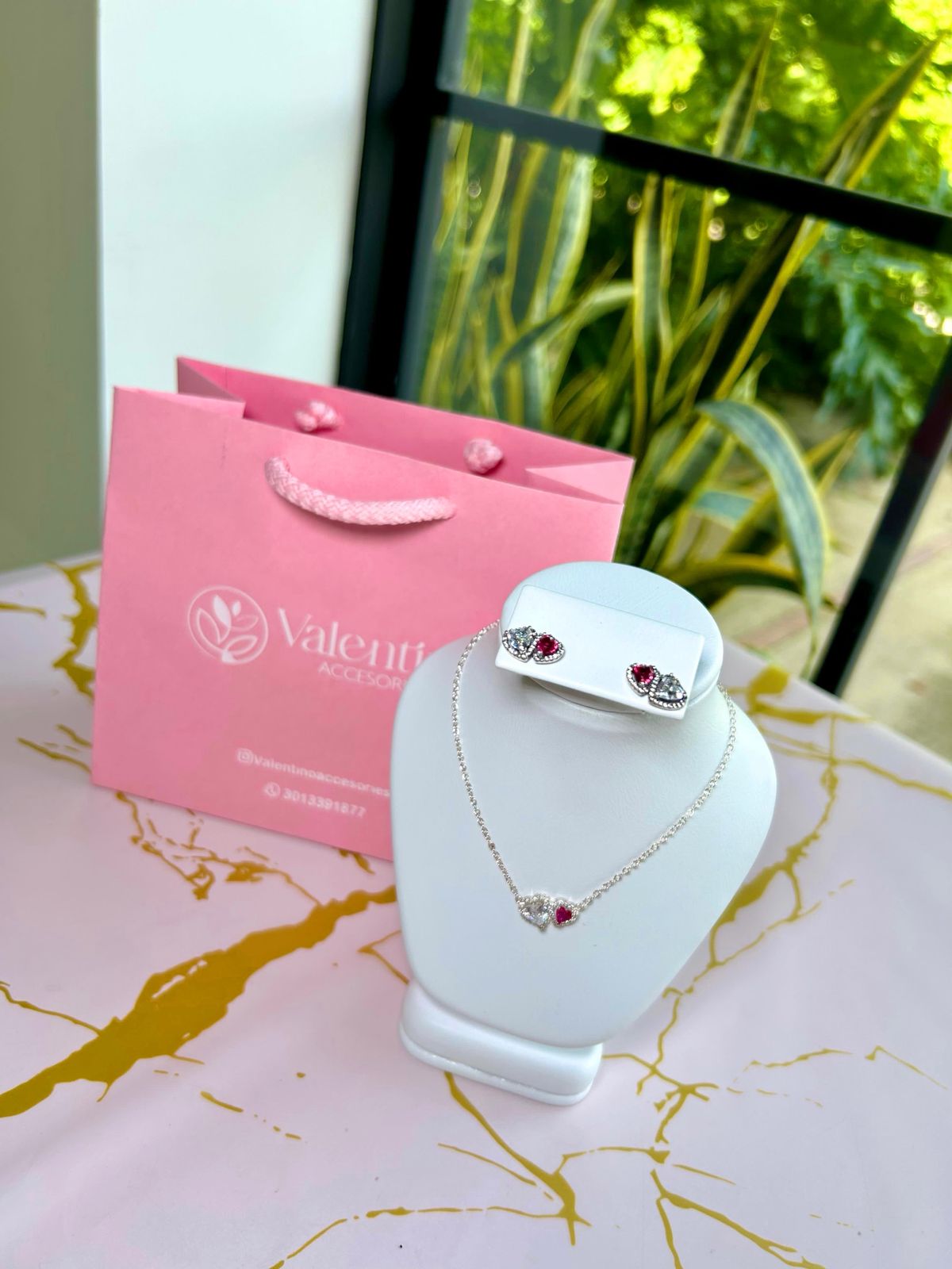 Caja x9 fresas + Caja de rosas con set cadena y aretes en plata